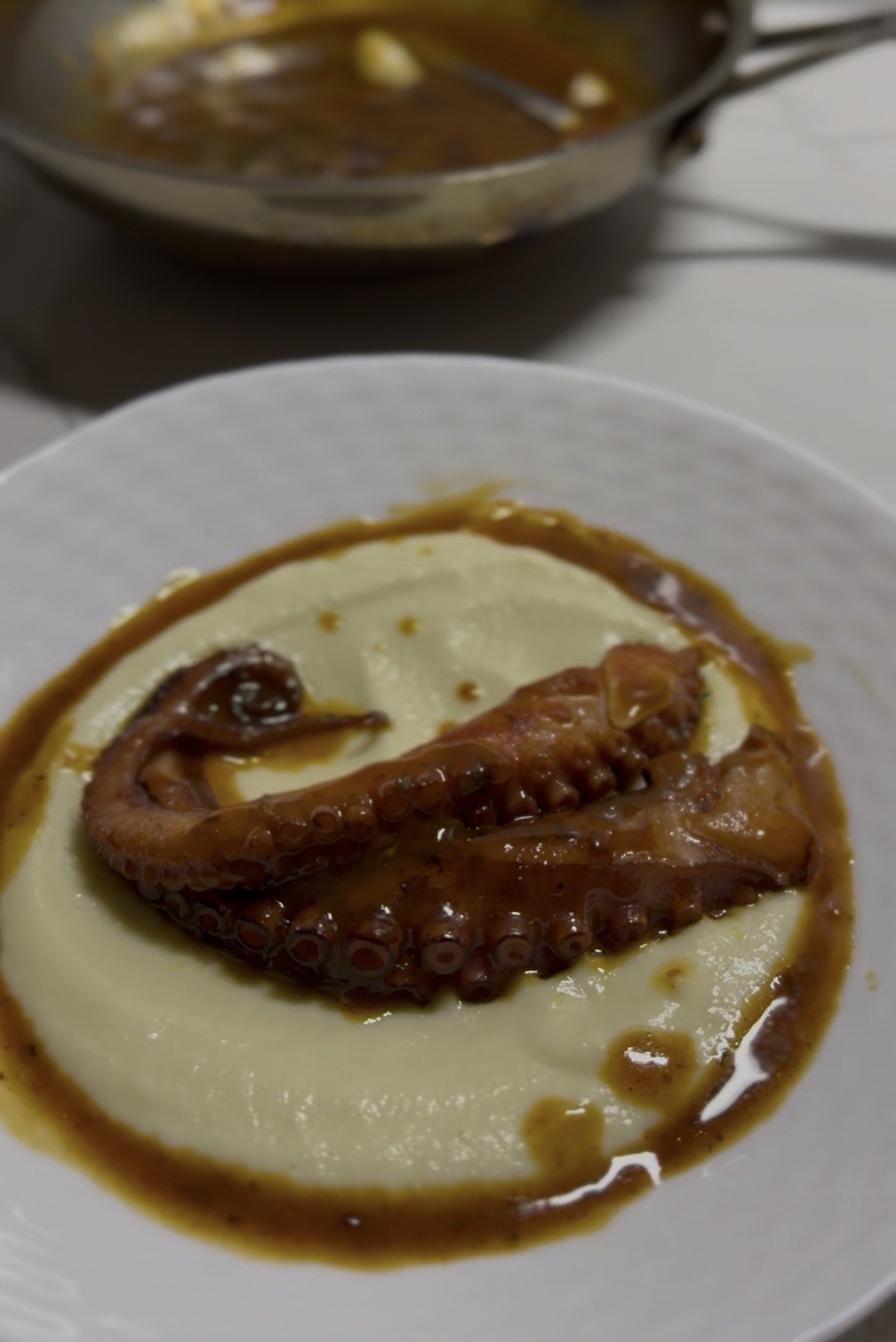 Pulpo con puré de coliflor y salsa de chipotle